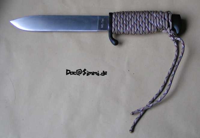 - Plastikgriff ersetzt durch Wicklung mit Leder und Paracord